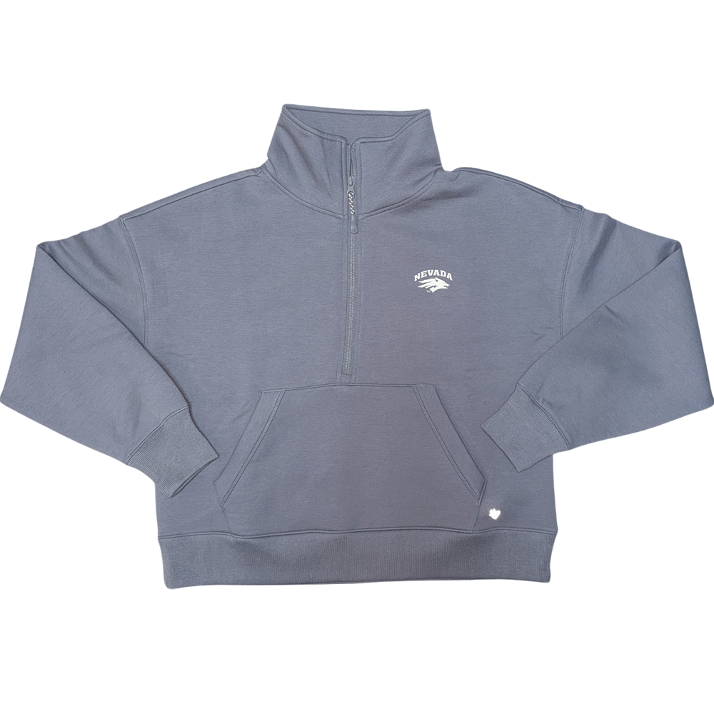 Stay comfortable and stylish while representing the Wolf Pack with the Women's Forward Pullover! This ultra soft and premium half zip sweatshirt is constructed from a lightweight cotton/polyester/spandex incline jersey fabric and features a cropped fit along with a rubberized print design proudly showcasing a primary Wolf Pack logo along with an arched "Nevada" wordmark; along with a small metallic '47 Brand logo next to the pocket. Built for an active lifestyle and made for all day comfort - Go Pack!