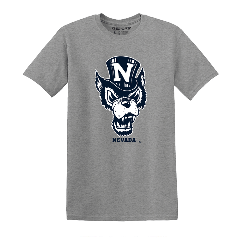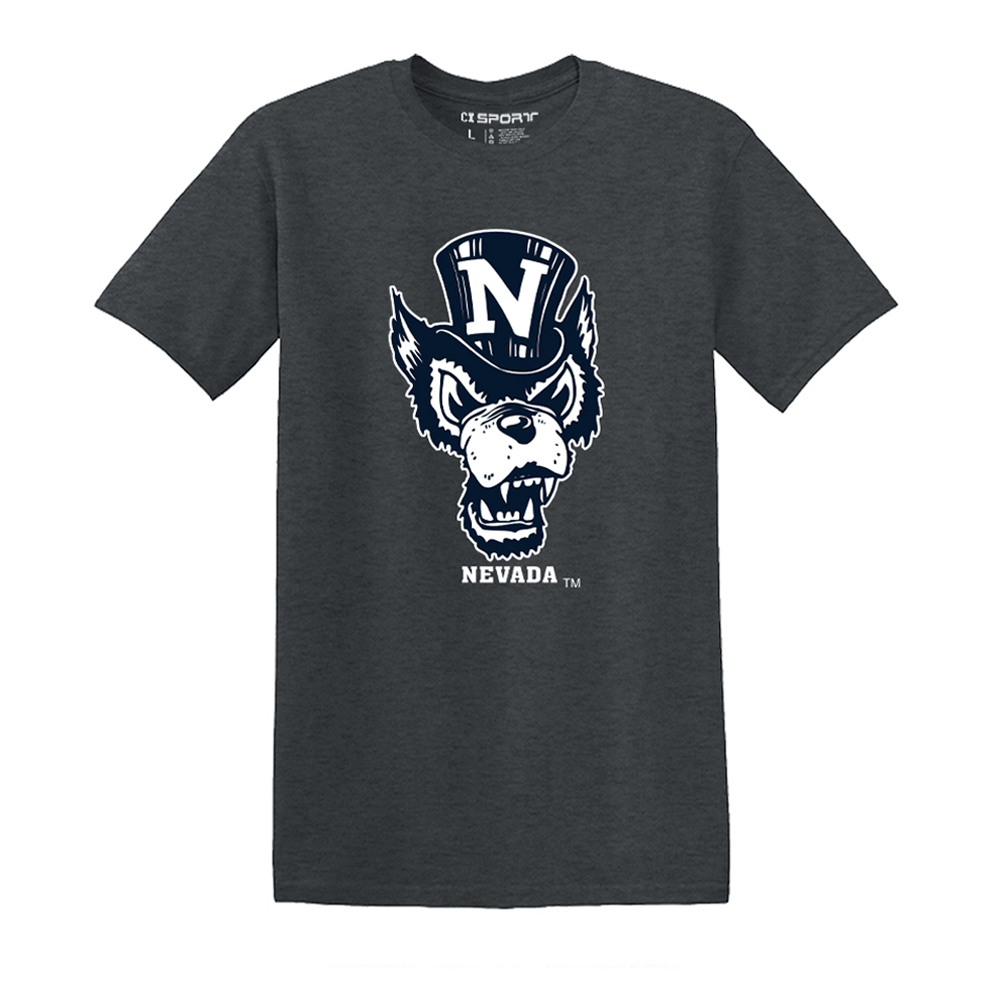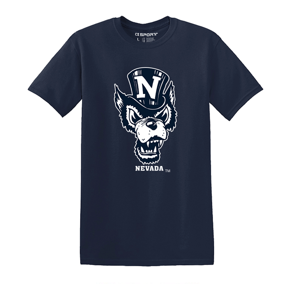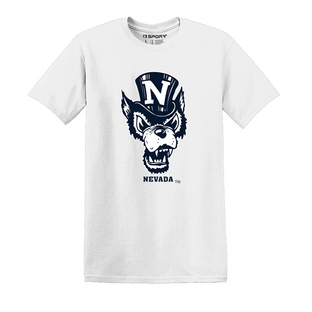 Represent the Wolf Pack with the Basic Wolfie Tee! This 100% cotton University of Nevada t-shirt features a screenprinted design proudly showcasing the throwback "Top Hat Wolf" logo with "Nevada" underneath. Go Pack!