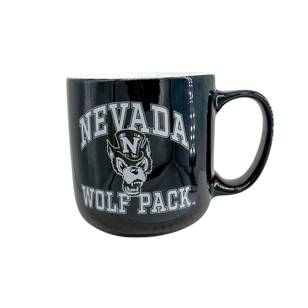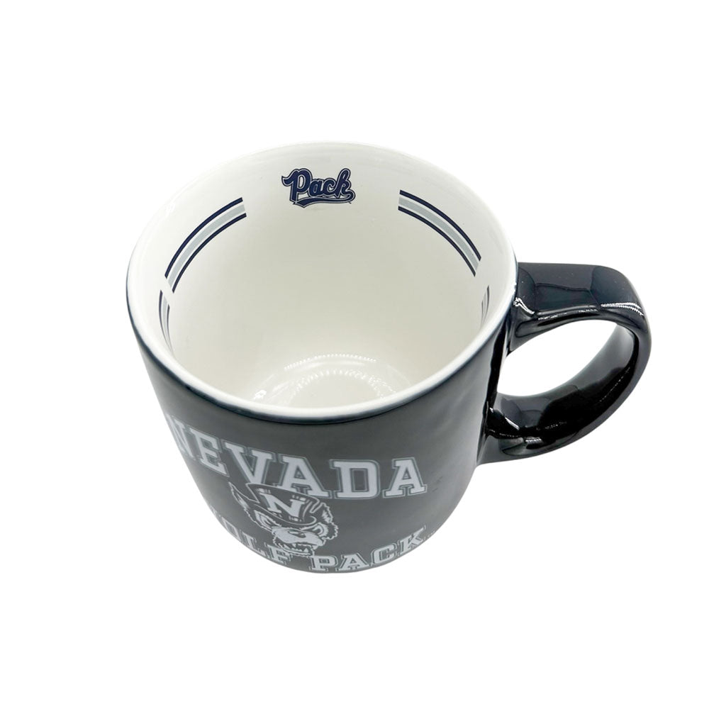 Add some Wolf Pack pride to your kitchen or office with the Wolf Pack Stripes Mug! This 15.5 oz ceramic mug features a printed design proudly showcasing a Top Hat Wolf logo along with an arched "Nevada" wordmark and "Wolf Pack" underneath. This mug also features a striped design on the inside paired with a Script Pack logo. Go Pack!
