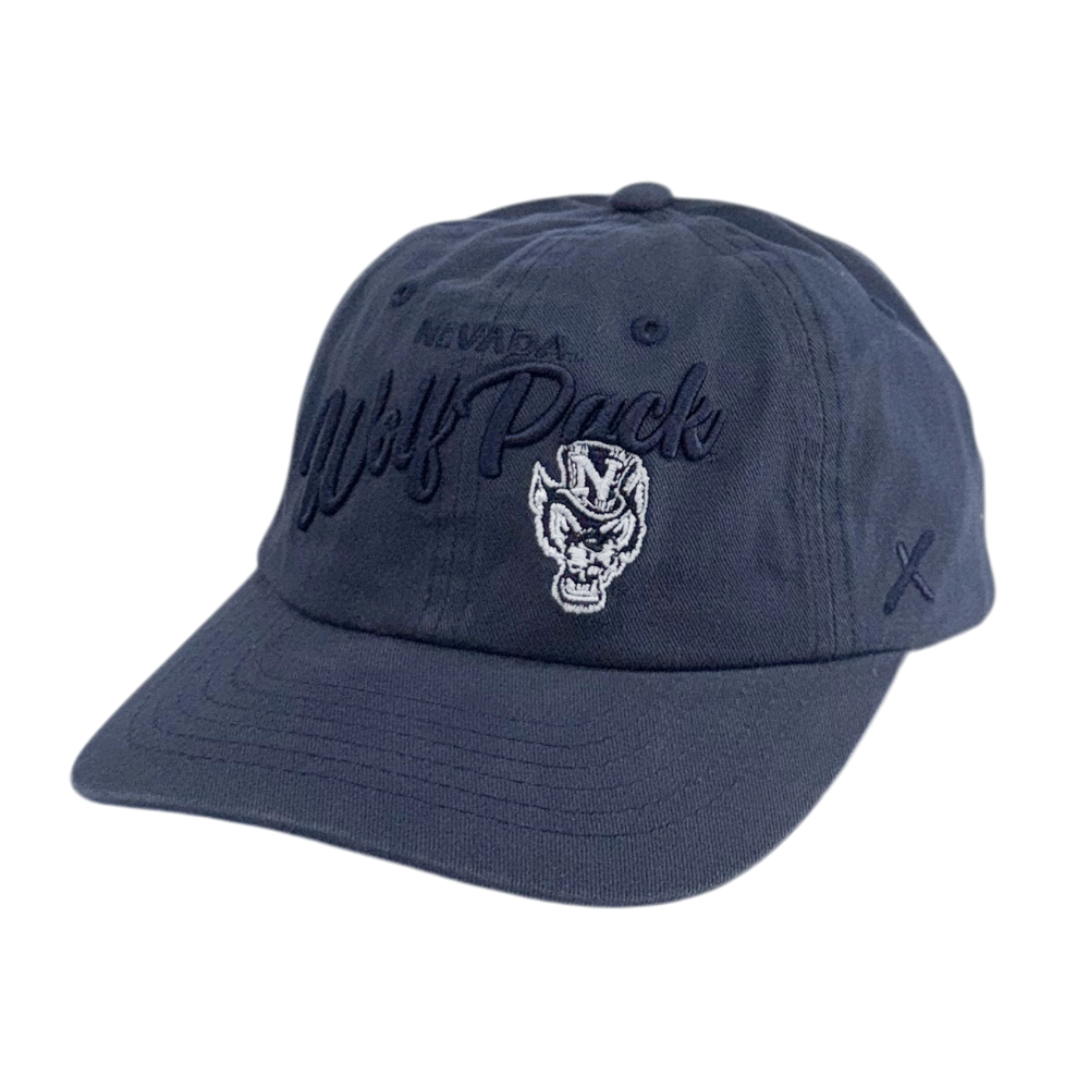 Represent the Wolf Pack in style with the Glamour Wolfie! This relaxed fit baseball cap features an adjustable strap as well as an embroidered design proudly showcasing a Throwback Top Hat Wolf logo along with a stylized 3D "Nevada Wolf Pack" wordmark. Go Pack!
