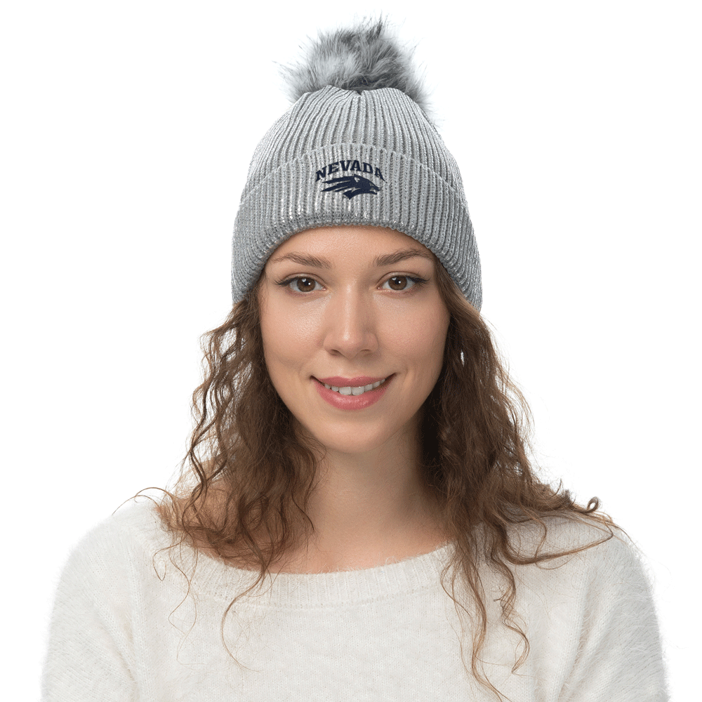 Stay warm and represent the Wolf Pack with the Metallic Silver Beanie! This shiny women's knit beanie is made of a polyester/rayon blend and features a faux fur pom on top as well as an embroidered Wolf Pack logo placed neatly on the cuff. Go Pack!