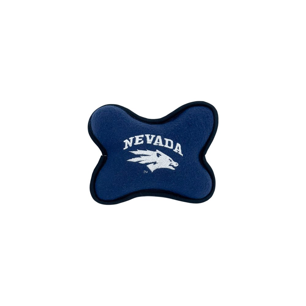 Play with your pets with Wolf Pack way with the Bone Chew Toy! This plush dog toy is approximately 5" in length and features an embroidered design proudly showcasing the primary Wolf Pack logo along with an Arched "Nevada" wordmark. Go Pack!