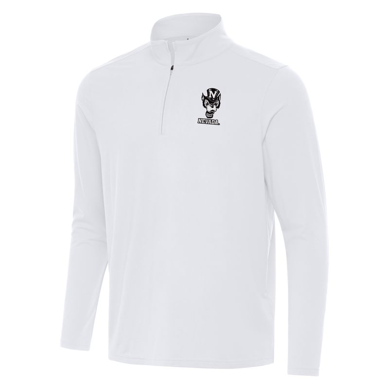 Represent the Wolf Pack in comfort with the Metallic Wolfie Intent 1/4 Zip! This lightweight men's quarter zip pullover is made of a 88% polyester/12% spandex blend and features a rubberized patch design proudly showcasing a metallic Top Hat Wolf logo paired with a “Nevada” wordmark underneath. Go Pack!
