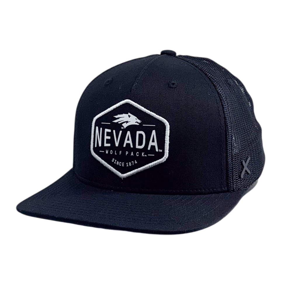 Stay cool and rep the Pack with the Hex hat! This sleek adjustable trucker cap features an all-black design with breathable mesh back panels for extra comfort along a structured front panel with a bold embroidered hexagon patch showcasing the words “Nevada,” “Wolf Pack,” and “Since 1874” along with a Sport Wolf logo. This cap is an easy go-to for game days, golf rounds, and everyday wear. Go Pack!