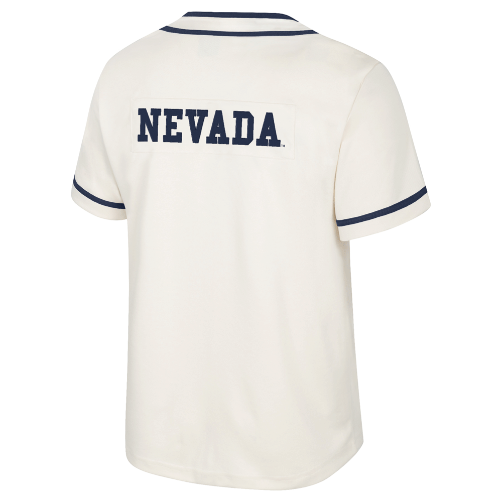 Represent Wolf Pack Baseball with the Outfield Basevall Jersey! This heavy polyester jersey features navy piping along with an embroidered design proudly showcasing an Baseball N logo on the left side of the chest and a "Nevada" wordmark across the back, as well as a patch on the bottom of the front-left showcasing a printed Script Pack logo. Perfect for game day - Go Pack!