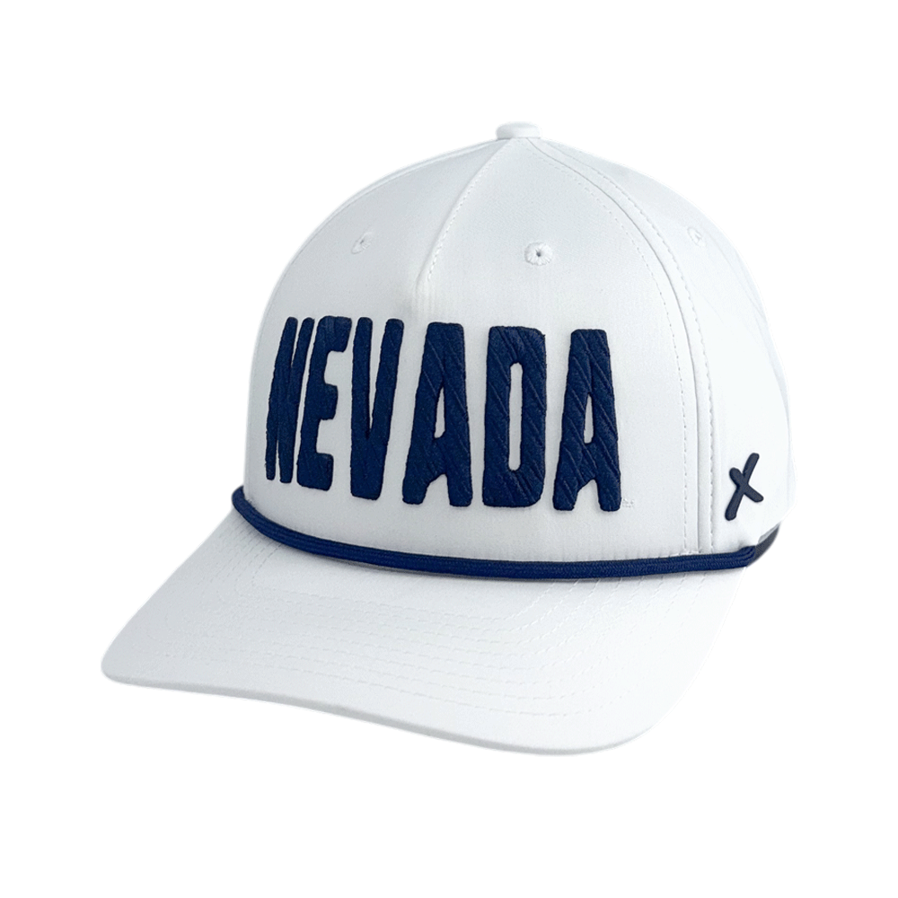 Look stylish and represent the Wolf Pack with the Adult Volt hat! This lightweight nylon hat features a navy colored rope across the bill, along with an embroidered design with a 3D texture showcasing a "Nevada" wordmark up front. Perfect for the golf course or the tailgate - Go Pack!