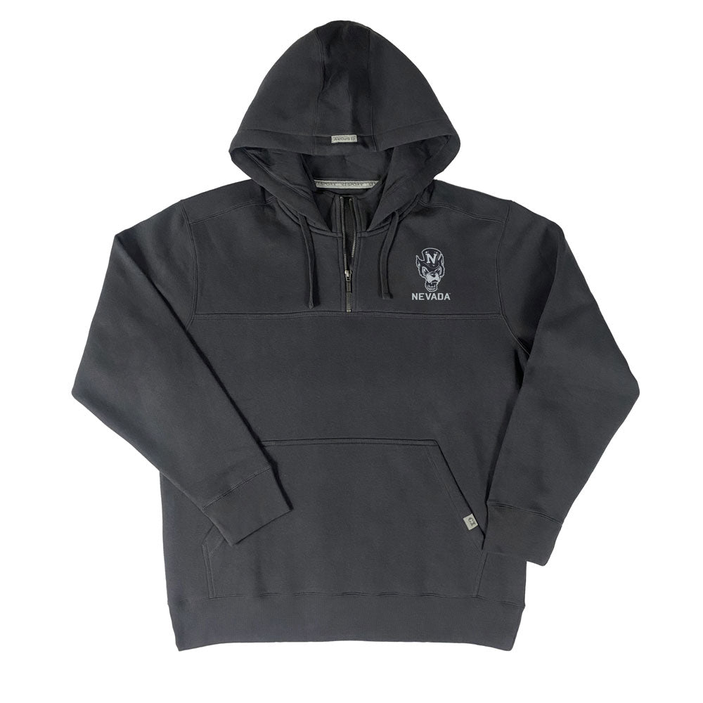 Stay warm and stylish with the Wolfie Summit Hoodie! This men's 1/4 zip sweatshirt is made of a cozy 60% cotton / 40% polyester midweight fleece and features an embroidered design proudly showcasing a Throwback Top Hat logo along with a block "Nevada" wordmark. Perfect for game day or every day!