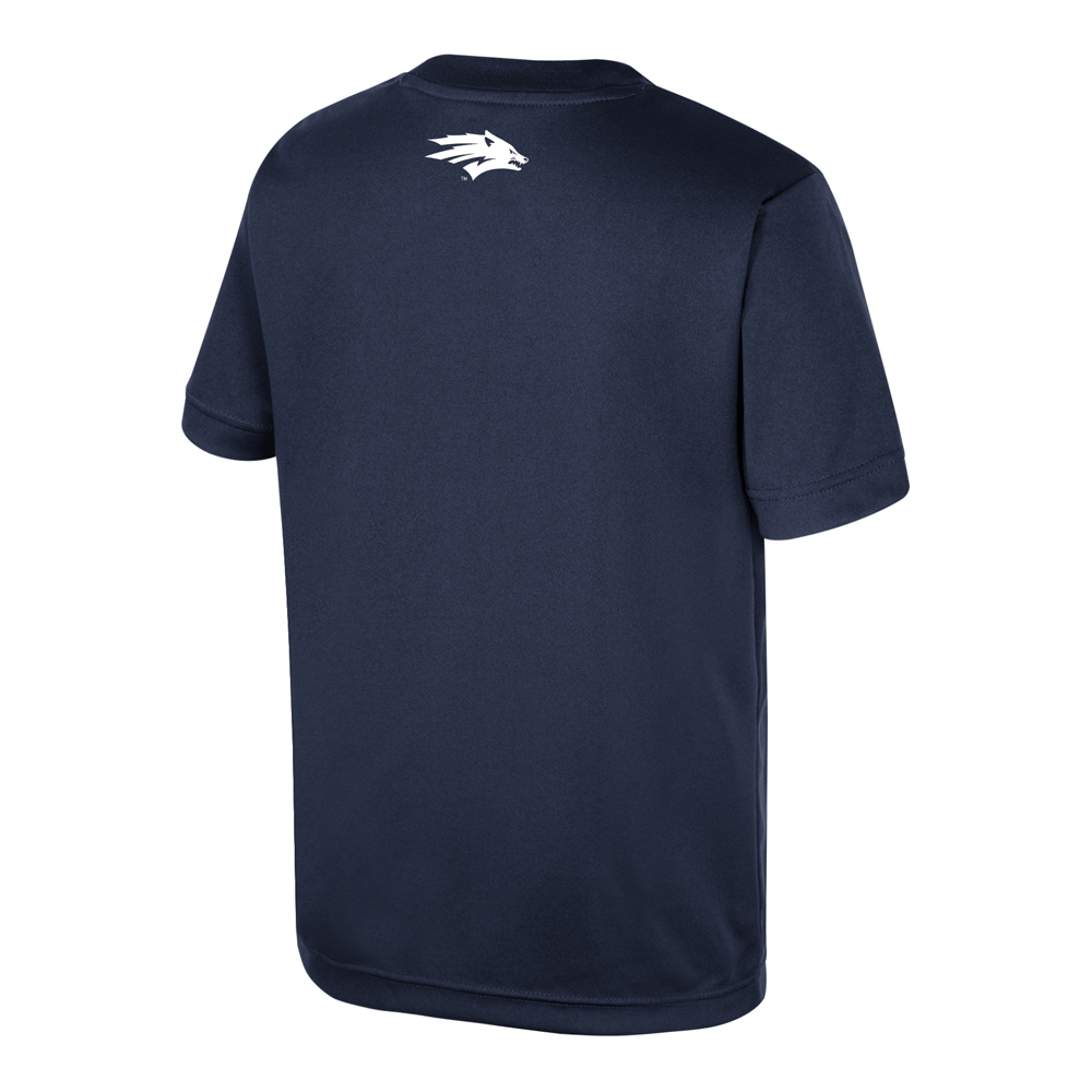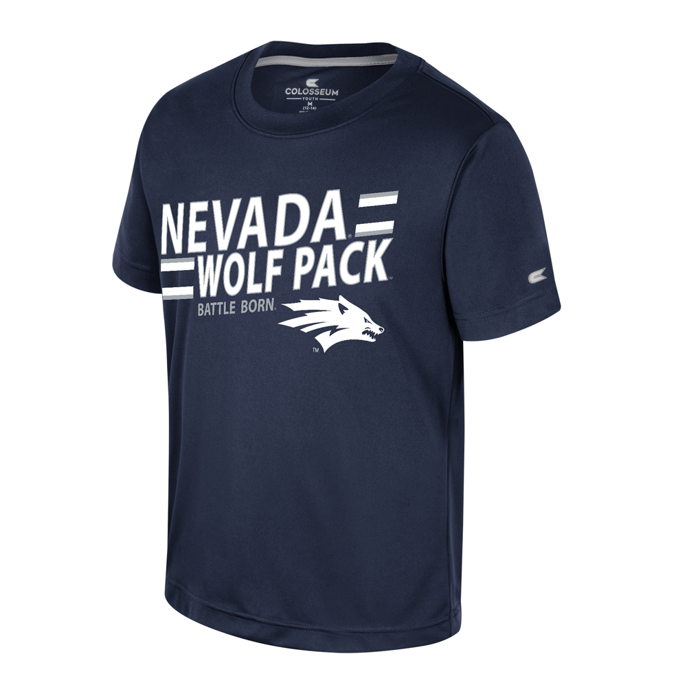 Dress your young Wolf Pack fan with the Youth Statement Tee! This sleek youth tee is made of 100% polyester and features a rubberized print design proudly showcasing a Sport Wolf logo, "Nevada Wolf Pack" wordmarks, "Battle Born" in grey, and an additional Sport Wolf logo on the back for extra flair. Perfect for gameday!